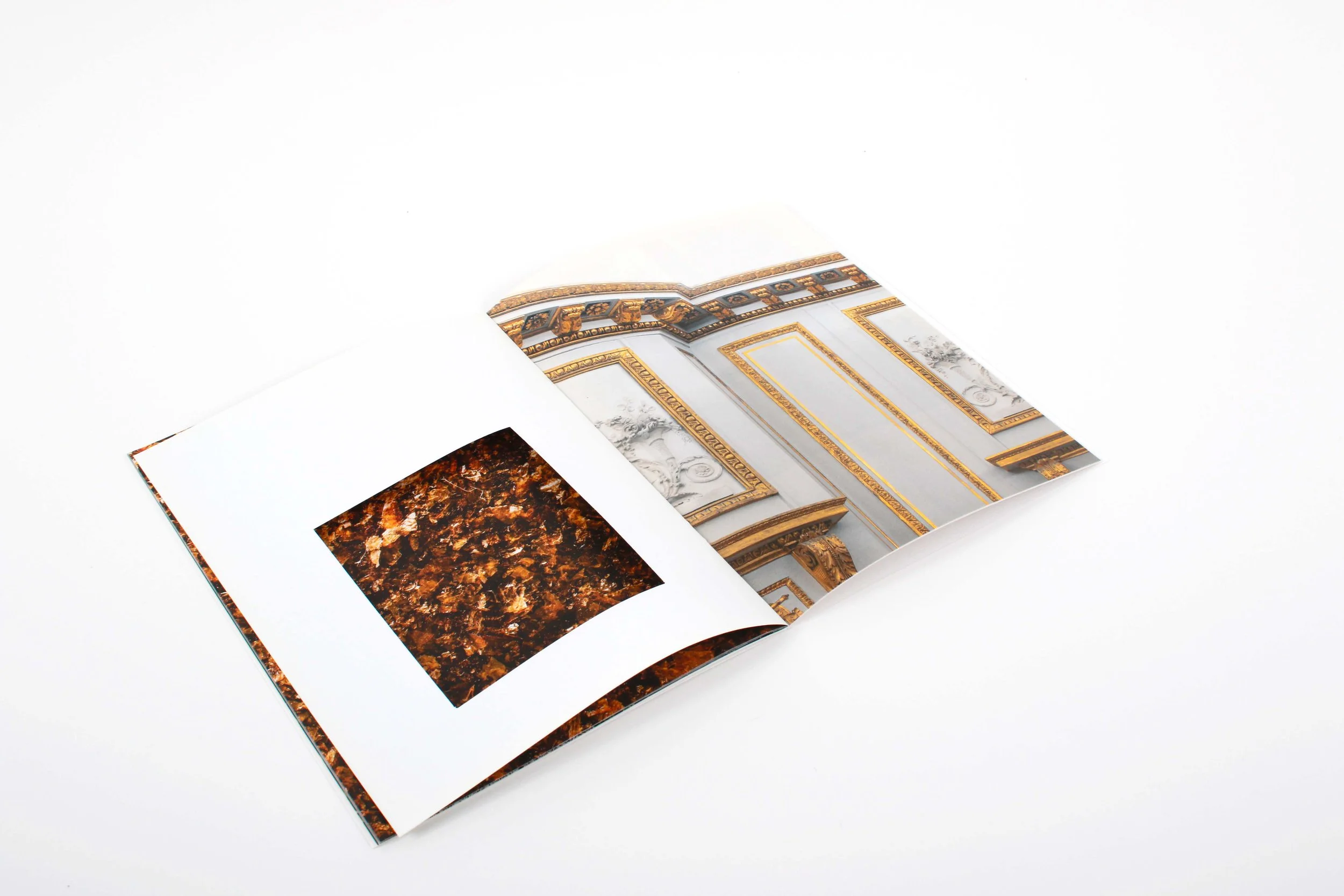 The catalogue was conceived as an extension of the exhibition itself — pages featured paper cut-out windows that revealed transitions between the historical and the newly created works. This tactile design mirrored the physical scenography, creating a dialogue between old and new, and transforming the reading experience into a sensory exploration.
